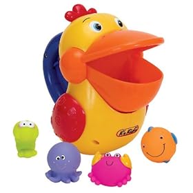 I bought this for my daughter when she was 8 months old and time to transition her into the "big" bathtub.I knew it was important for her to enjoy her bath and wanted to provide entertainment for her.This is a "must have" for every parent.It has strainers, a stringy sponge, and a "water faucet" that you squeeze to have the water flow.It is wonderful for her because she loves to figure out how things work.